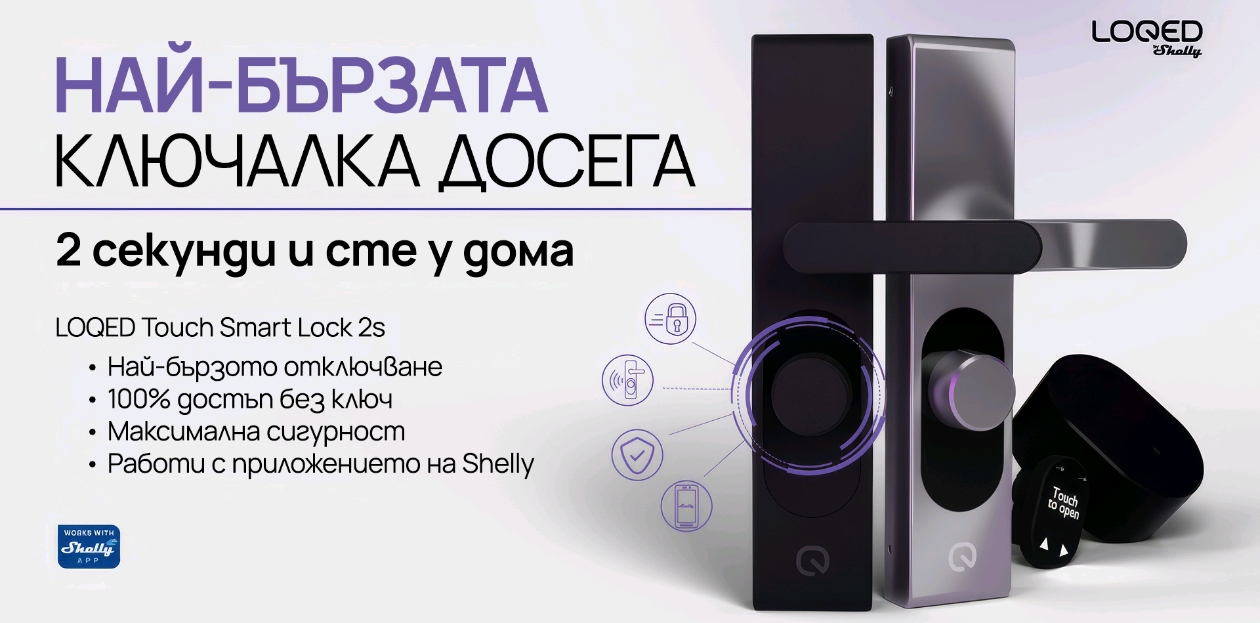 Shelly Group, водещ доставчик на решения за IoT и интелигентни сгради, представя подобрена версия на интелигентната ключалка LOQED by Shelly, сега по-бърза и плавно отваряща се от всякога. Задвижвана от по-бърз мотор, LOQED Touch Smart Lock 2s осигурява значително подобрение в скоростта на интеракциите, без да прави компромис с функциите си за висока сигурност. Чрез заключване и отключване само за 2 секунди, тя позволява на потребителите да влязат веднага щом стигнат до прага на дома или офиса.