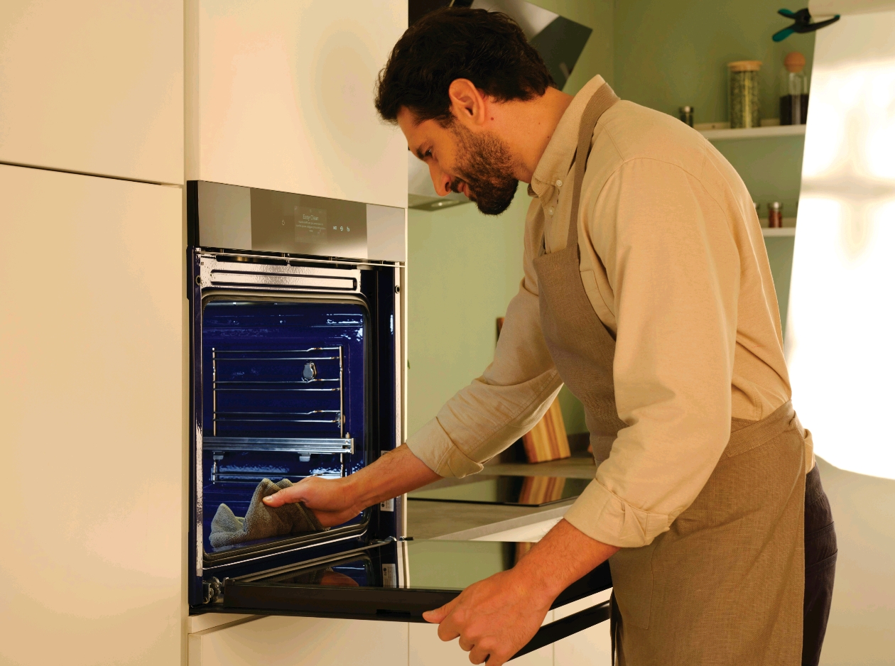 Същото важи и за поддръжката на фурната. С EasyClean почистването отнема минути, а при по-сериозно замърсяване скоростната пиролиза се справя за около час. Така кухнята не само помага в процеса на готвене, но и почиства следите си след него.